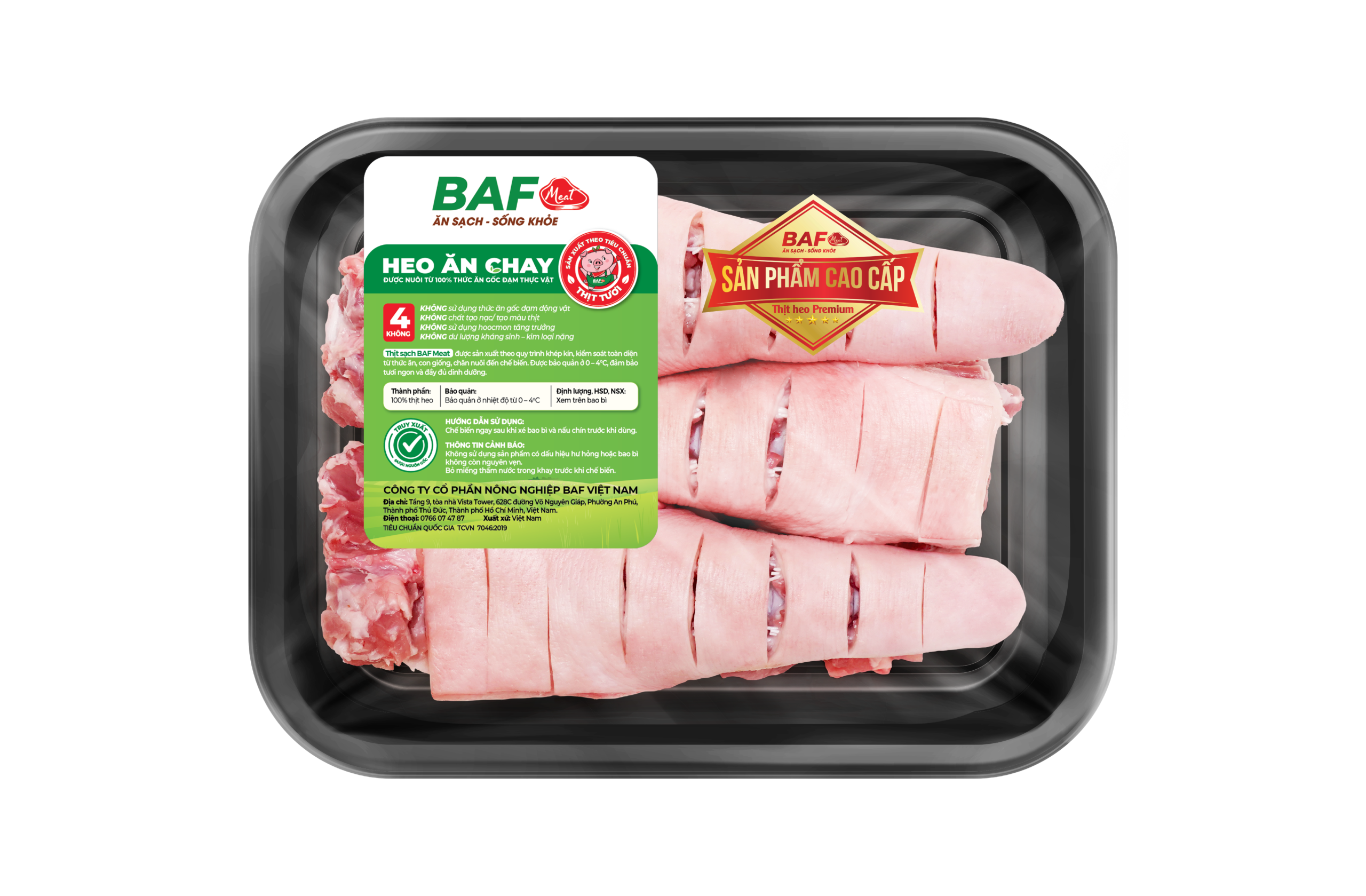 Đuôi heo BAF Meat chứa nhiều chất dinh dưỡng có ích như protein 26,4%, lipid 22,7%, glucid 4% và nhiều chất khoáng vi lượng như Ca, P, Fe…Chất protein của đuôi động vật, chủ yếu là ở da, gồm nhiều chất hợp thành như: collagen, elastin, keratin, albumin, globulin…