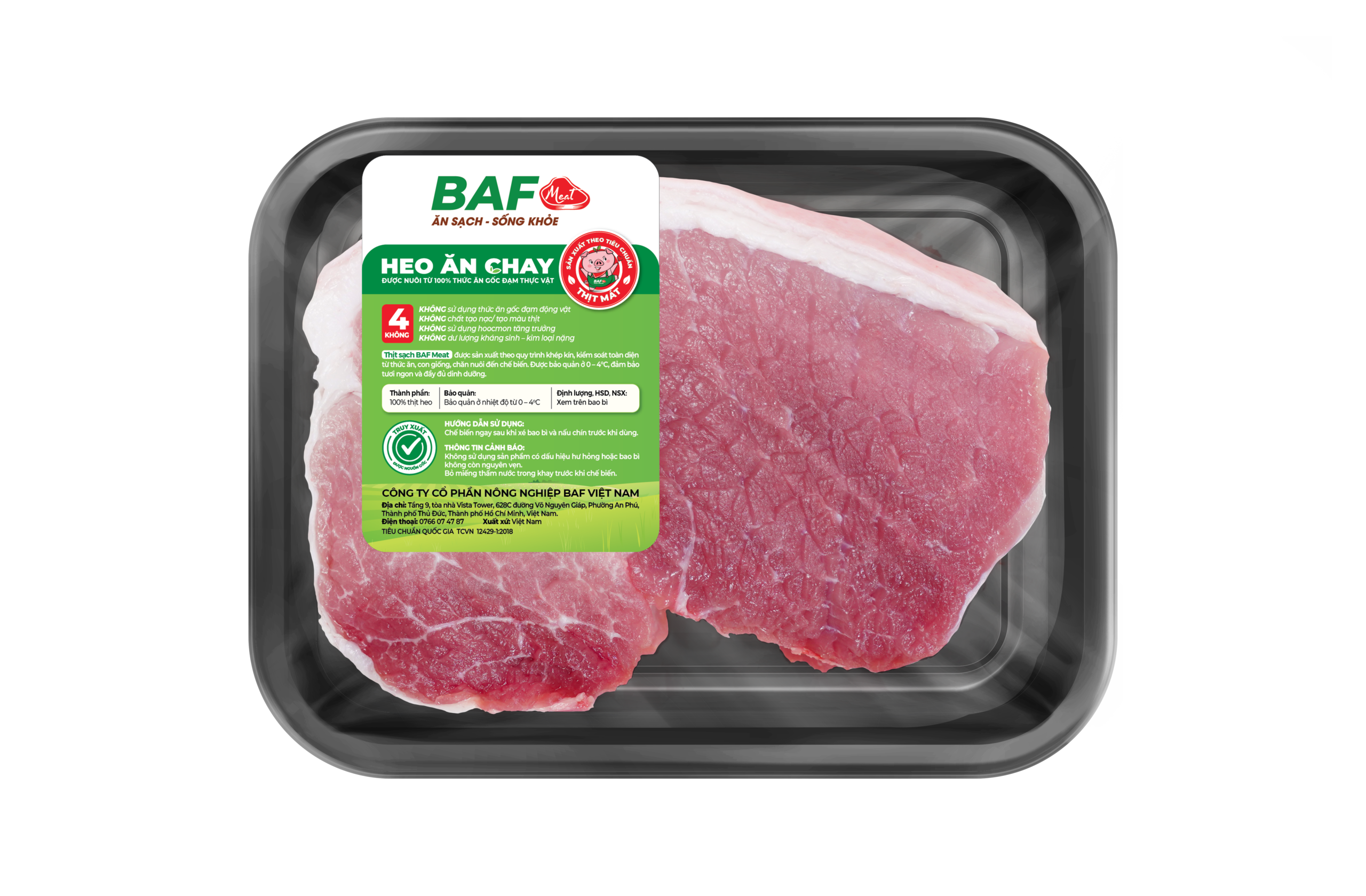 Nguồn nguyên liệu: Đàn heo được lựa chọn kỹ càng từ trại chăn nuôi riêng của BAF hoặc từ các hộ dân nuôi theo quy trình khép kín và an toàn mà BAF chuyển giao. Heo đưa vào giết mổ phải là heo khỏe mạnh, tuyệt đối không có mầm bệnh. Trước khi đưa vào giết mổ, heo được nghỉ ngơi để chất lượng thịt heo sau khi giết mổ đạt chất lượng cao nhất. Sau khi giết mổ, heo bên đều được Cơ quan thú y nhà nước kiểm tra, đóng dấu trước khi đưa ra thị trường tiêu thụ.