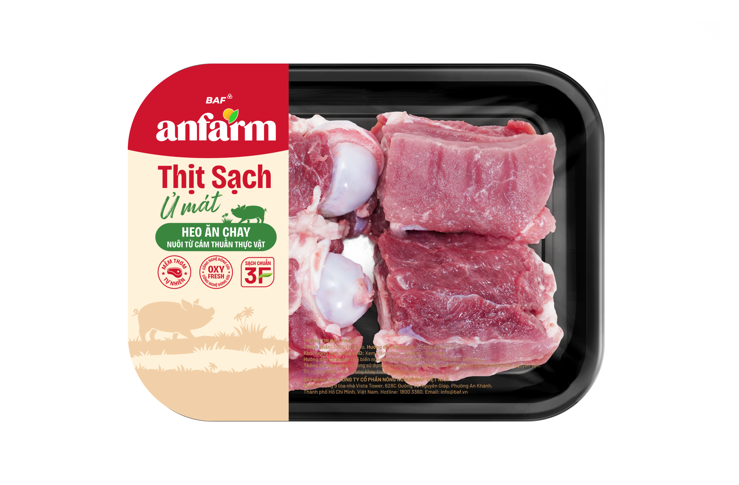 The pigs are carefully selected from BAF’s farms or households raised following a closed and safe process that BAF Meat transfers. The pigs brought in for slaughter must be healthy and free of diseases. Before slaughter, the pigs are rested; therefore, the pork is of the highest quality. After slaughter, the pigs are all inspected and stamped by the department of animal health before being put on the market for consumption.